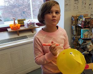 “Balloons Over Broadway” tells the story of Tony Sarg, the original creator of the giant helium balloons featured in the annual Macy’s Thanksgiving Day Parade in New York City. The students viewed video clips of Macy’s parades from years past on their Chromebooks to gather ideas before engaging in a STEM challenge to plan, design and build their balloons. Fourth-graders used a variety of craft supplies (streamers, construction paper, yarn, markers, pipe cleaners, googly eyes, and other materials) to create mini versions of the balloons they would want to see become part of the Macy’s parade.