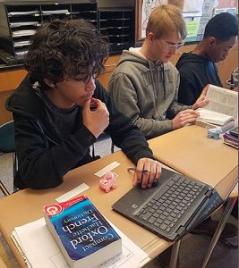 Using their dictionaries, the students translated the adoption papers to learn about the personalities of their snails, including their likes and dislikes. One student found out their snail’s favorite color is pink, for example, (Sa couleur préférée est rose). Another learned their snail enjoys jumping, dancing, swimming and knitting (Elle aime sauter, danser, nager et tricoter) and is afraid of owls, clocks and oysters (Elle a pour des hiboux, des horloges, et des huîtres).