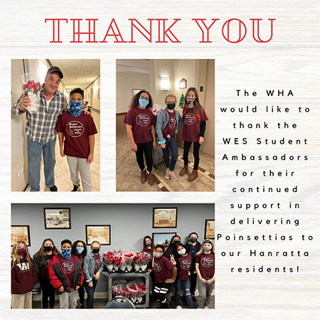 Earlier in the week, Student Ambassadors from Watervliet Elementary School delivered beautiful red poinsettias to residents of the Hanratta Apartments, and received the thank you note, below, from the Watervliet Housing Authority.